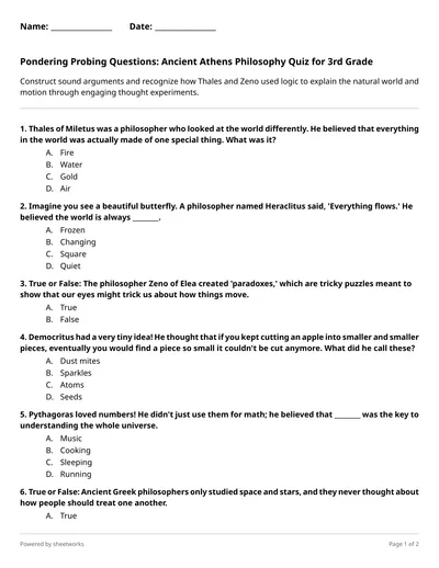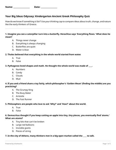 How do we know if something is fair? Use your thinking cap to compare ideas about truth, change, and nature like the early thinkers of Greece.