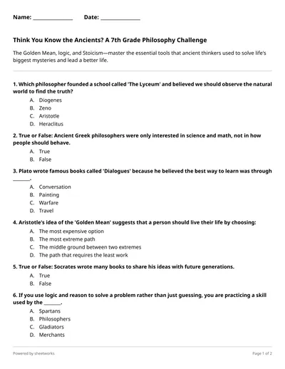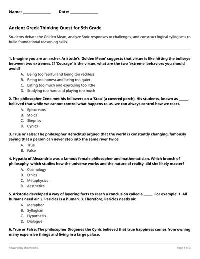 Students debate the Golden Mean, analyze Stoic responses to challenges, and construct logical syllogisms to build foundational reasoning skills.