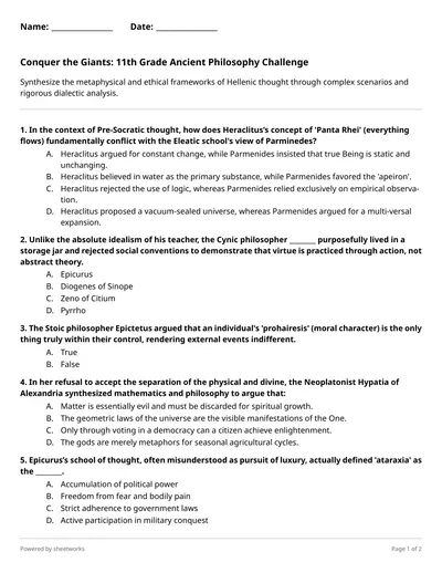 Engage with the rigorous logic of the Hellenistic schools and the Pre-Socratics to prove your mastery of complex dialectics and metaphysical theories.
