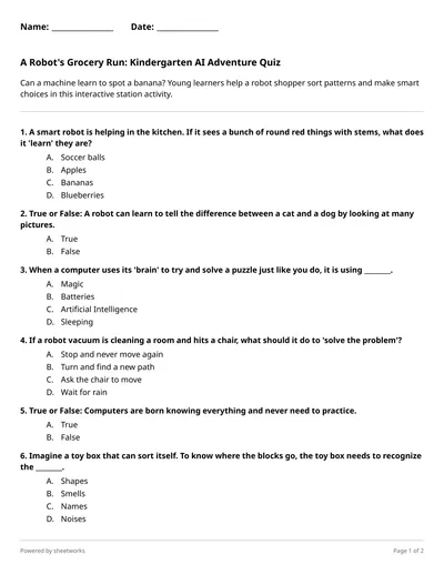 Can a machine learn to spot a banana? Young learners help a robot shopper sort patterns and make smart choices in this interactive station activity.