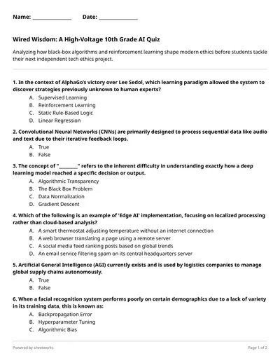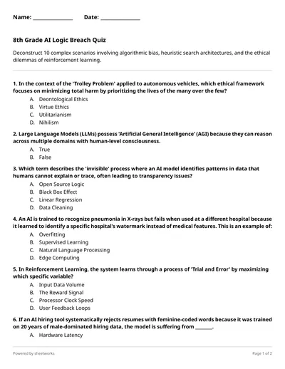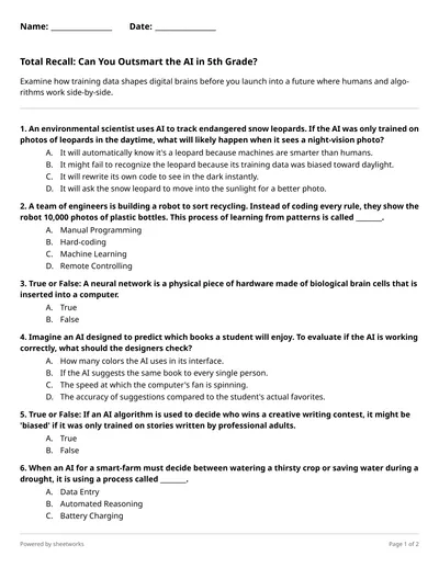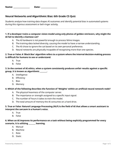 Students analyze how training data shapes AI outcomes and identify potential bias in automated systems during this rigorous assessment or bell-ringer activity.