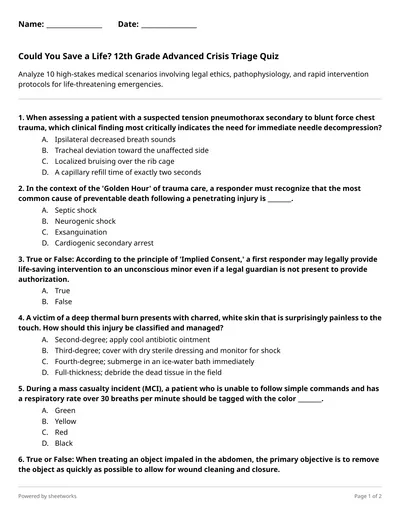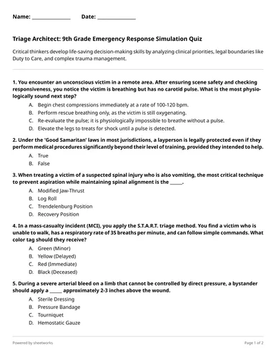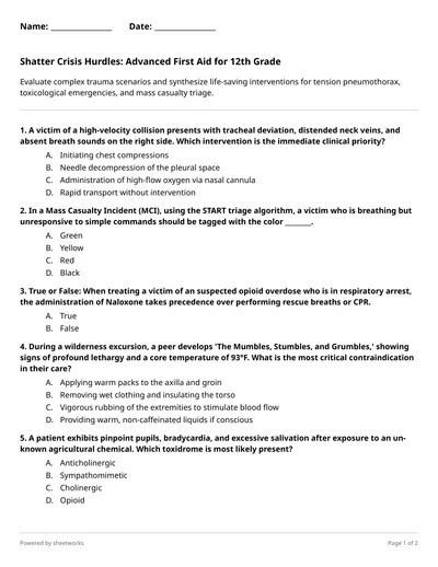 Triage, shock management, and wound categorization. These 10 challenges task students with applying life-saving logic to complex medical emergencies and safety protocols.