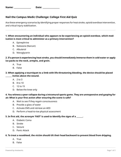 Ace these emergency scenarios by identifying proper responses for heat stroke, opioid overdose intervention, and critical injury stabilization.