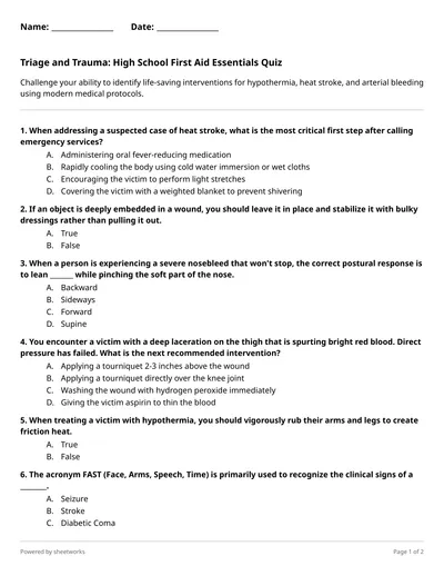 Challenge your ability to identify life-saving interventions for hypothermia, heat stroke, and arterial bleeding using modern medical protocols.