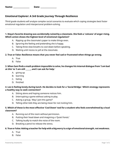 Third grade students will analyze complex social scenarios to evaluate which coping strategies best foster emotional regulation and interpersonal problem-solving.