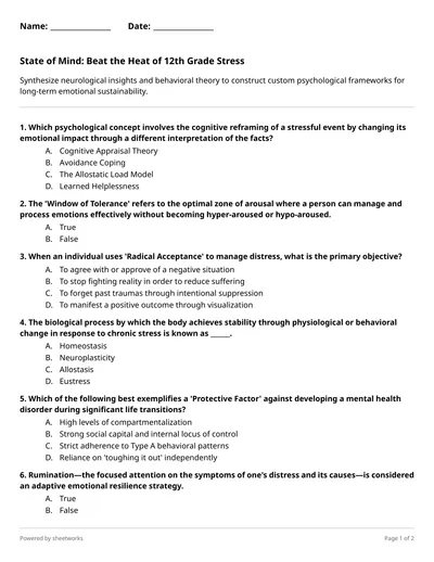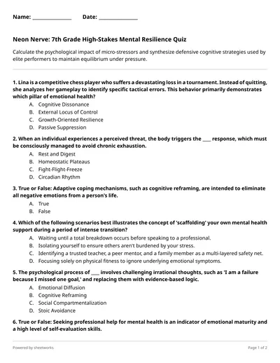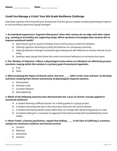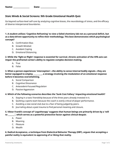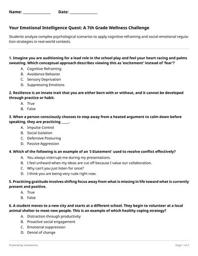 Students analyze complex psychological scenarios to apply cognitive reframing and social-emotional regulation strategies in real-world contexts.