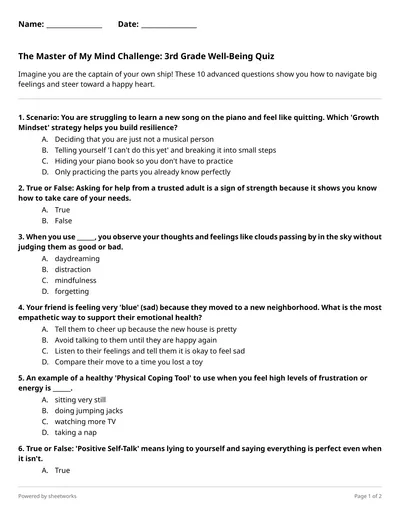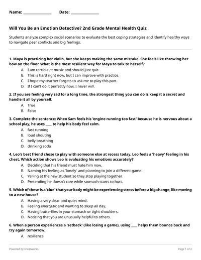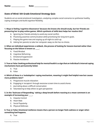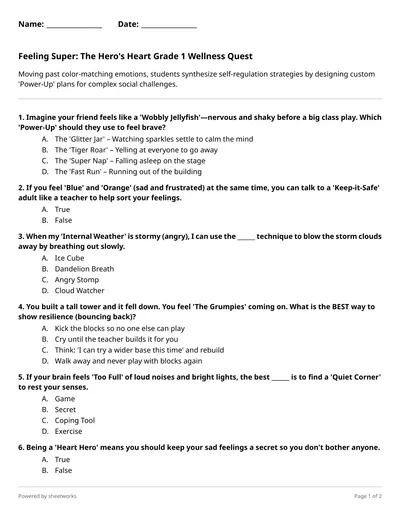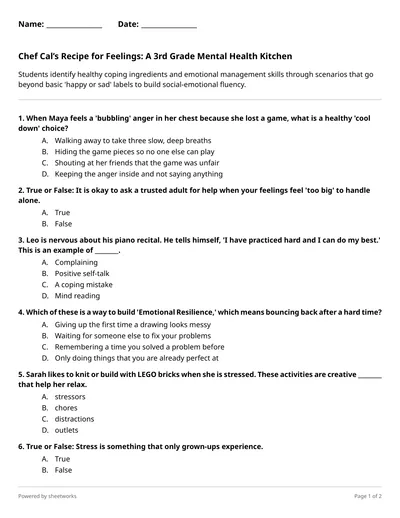 Students identify healthy coping ingredients and emotional management skills through scenarios that go beyond basic 'happy or sad' labels to build social-emotional fluency.