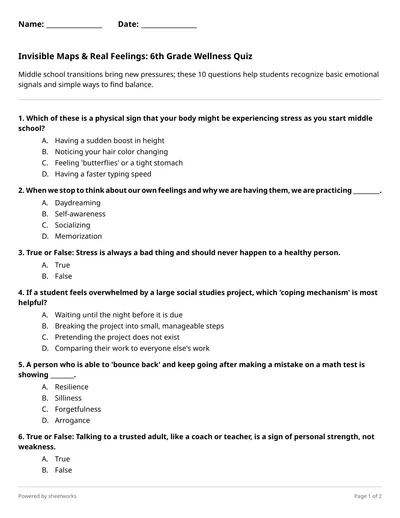 Middle school transitions bring new pressures; these 10 questions help students recognize basic emotional signals and simple ways to find balance.