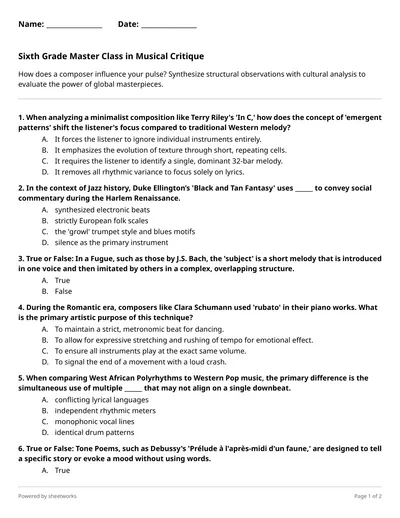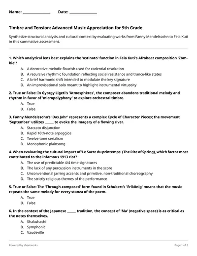 Challenge upper-level students to synthesize structural paradigms and sociopolitical aesthetics during this comprehensive summative assessment on intentional listening.