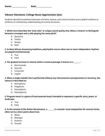 Students identify foundational elements of timbre, texture, and cultural context across global traditions to reinforce an introductory understanding of musical structures.