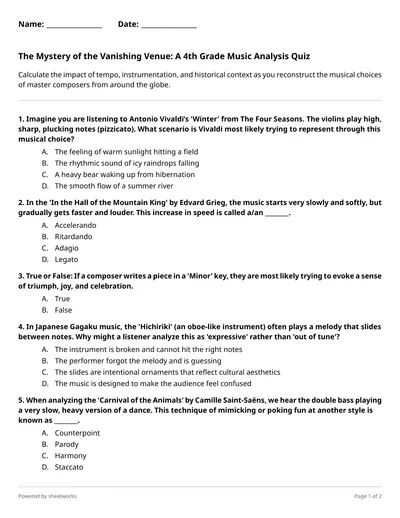 Calculate the impact of tempo, instrumentation, and historical context as you reconstruct the musical choices of master composers from around the globe.