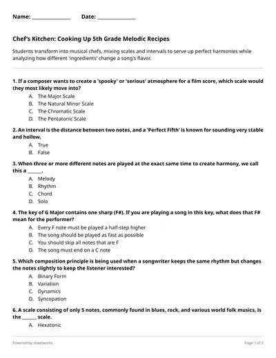 Students transform into musical chefs, mixing scales and intervals to serve up perfect harmonies while analyzing how different 'ingredients' change a song's flavor.