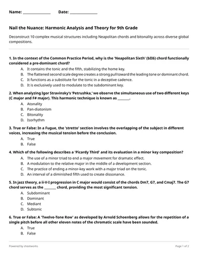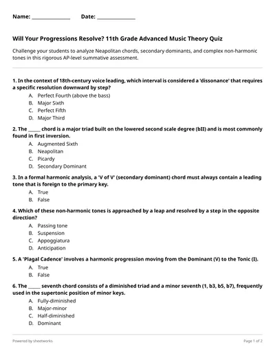 Challenge your students to analyze Neapolitan chords, secondary dominants, and complex non-harmonic tones in this rigorous AP-level summative assessment.
