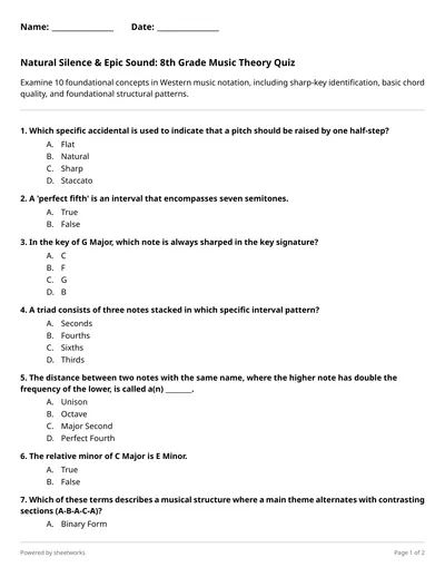 Examine 10 foundational concepts in Western music notation, including sharp-key identification, basic chord quality, and foundational structural patterns.