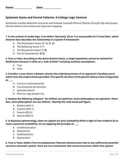 Synthesize complex deductive structures and evaluate nuanced informal fallacies through high-level propositional calculus and architectural argument mapping.