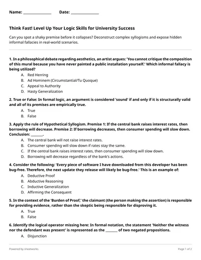 Can you spot a shaky premise before it collapses? Deconstruct complex syllogisms and expose hidden informal fallacies in real-world scenarios.