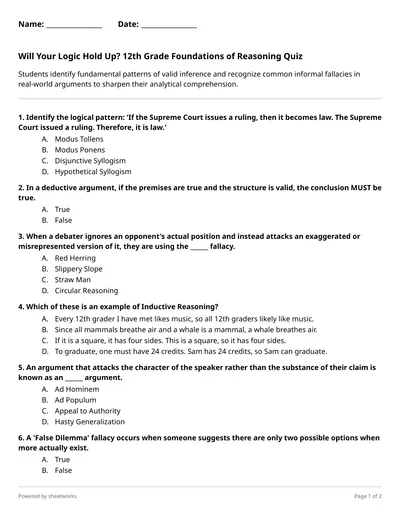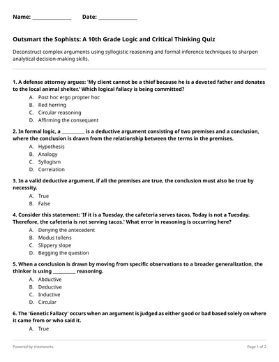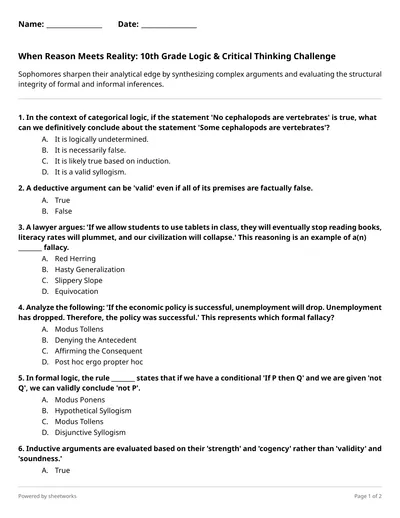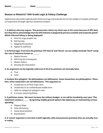 Sophomores dismantle sophisticated rhetorical traps and evaluate the formal validity of complex philosophical arguments through rigorous situational analysis.