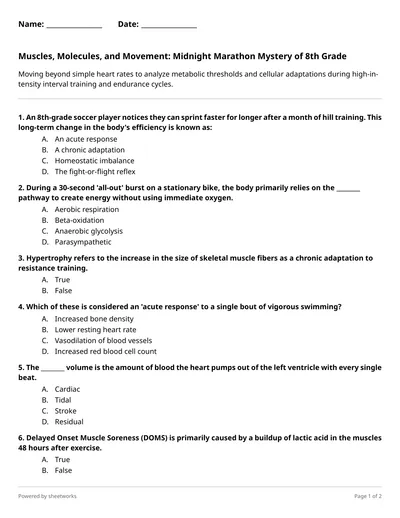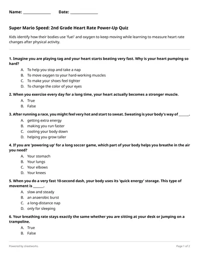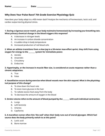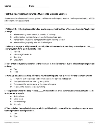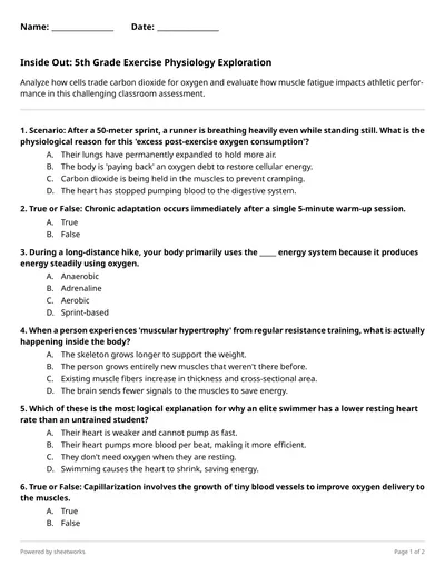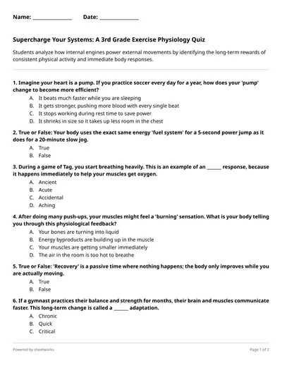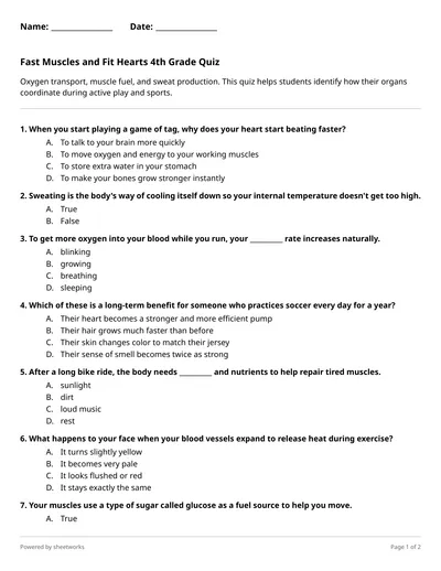 Oxygen transport, muscle fuel, and sweat production. This quiz helps students identify how their organs coordinate during active play and sports.