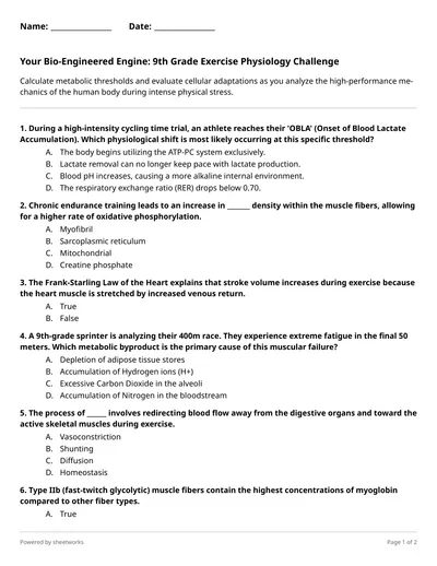 Calculate metabolic thresholds and evaluate cellular adaptations as you analyze the high-performance mechanics of the human body during intense physical stress.
