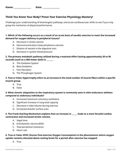 Challenge your understanding of bioenergetic pathways and acute cardiovascular shifts to see if you truly grasp the mechanics of physical performance.