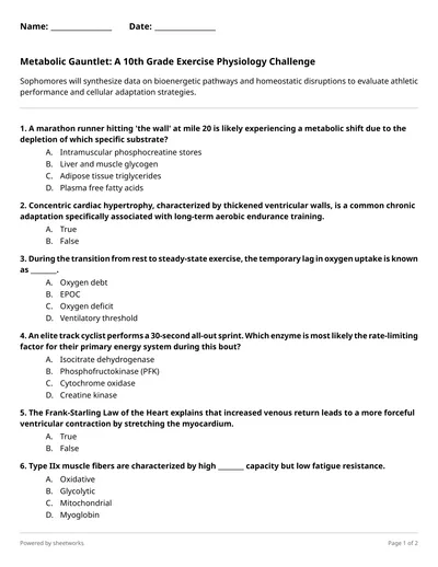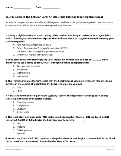 Sophomores will synthesize data on bioenergetic pathways and homeostatic disruptions to evaluate athletic performance and cellular adaptation strategies.
