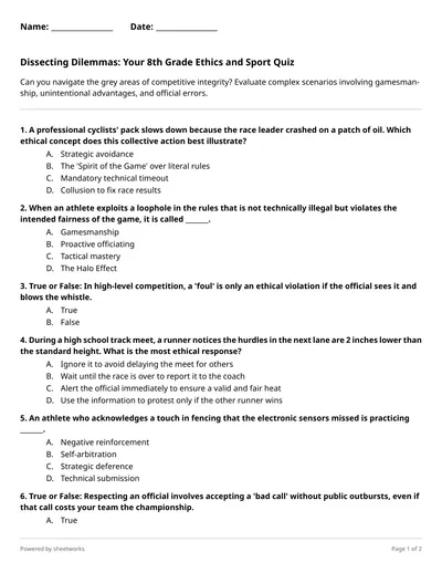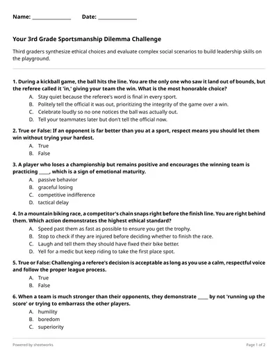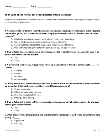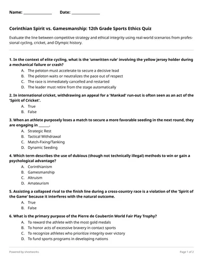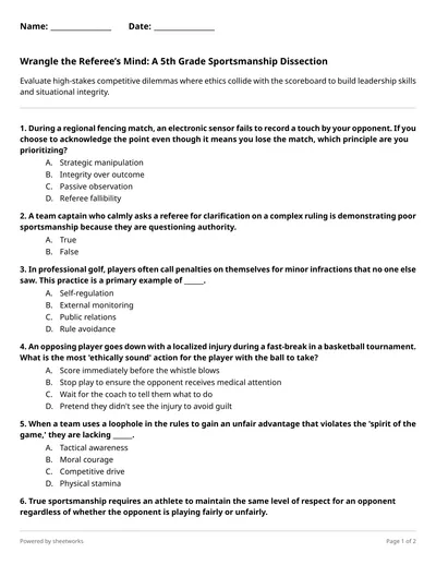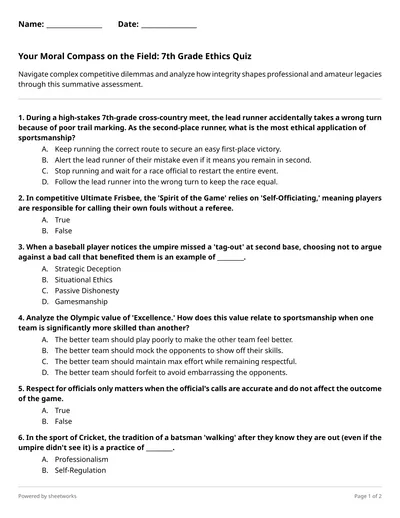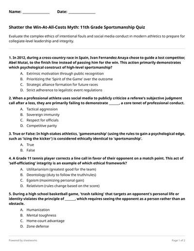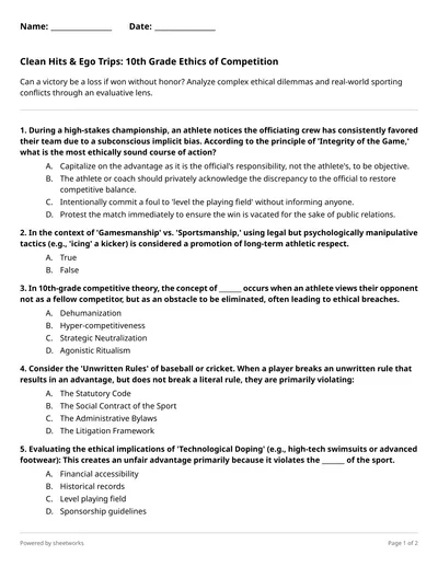 Sophomores analyze complex ethical dilemmas, cross-cultural competitive norms, and restorative justice practices in high-stakes athletic scenarios during this rigorous formative assessment.