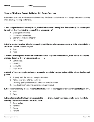Students analyze real-world athletic dilemmas to identify the hidden mechanics of integrity and peer respect in competitive environments.