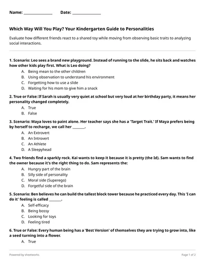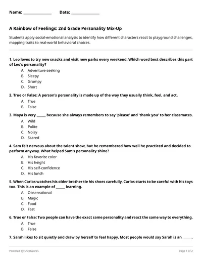 Students apply social-emotional analysis to identify how different characters react to playground challenges, mapping traits to real-world behavioral choices.