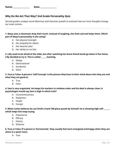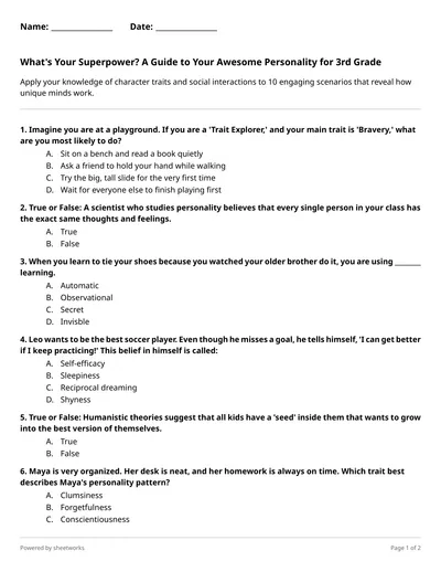 Evaluate 10 challenging scenarios exploring how environment, self-esteem, and habits shape unique character traits for advanced social studies learners.