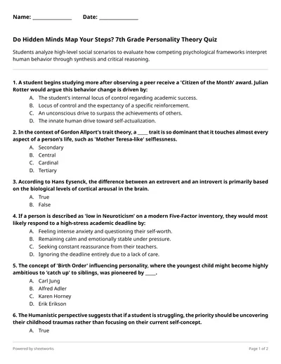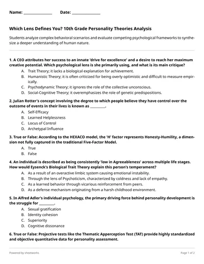 Students analyze complex behavioral scenarios and evaluate competing psychological frameworks to synthesize a deeper understanding of human nature.