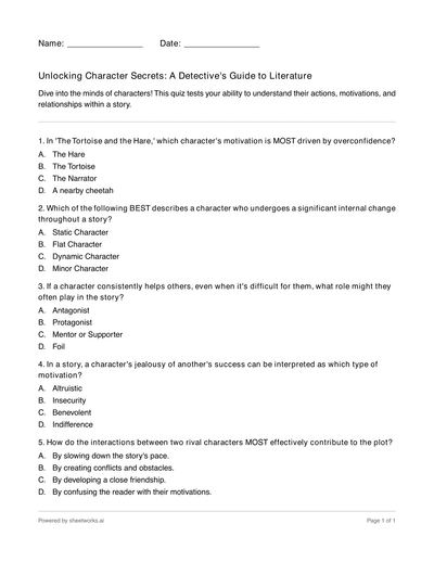 Dive into the minds of characters! This quiz tests your ability to understand their actions, motivations, and relationships within a story.