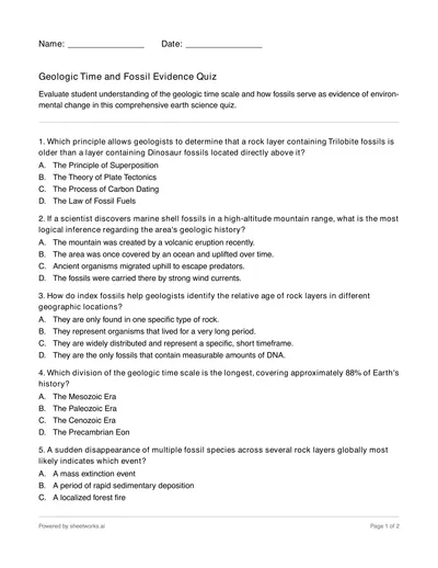 Evaluate student understanding of the geologic time scale and how fossils serve as evidence of environmental change in this comprehensive earth science quiz.