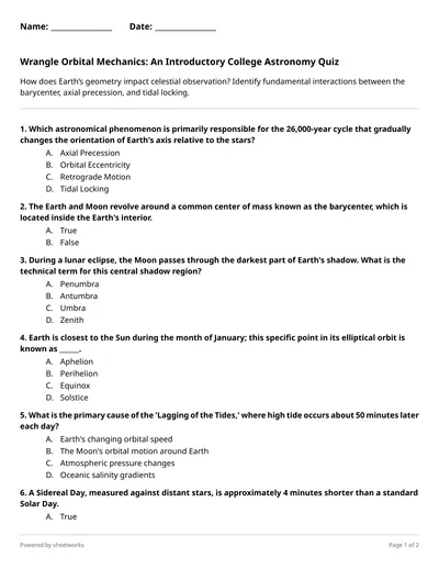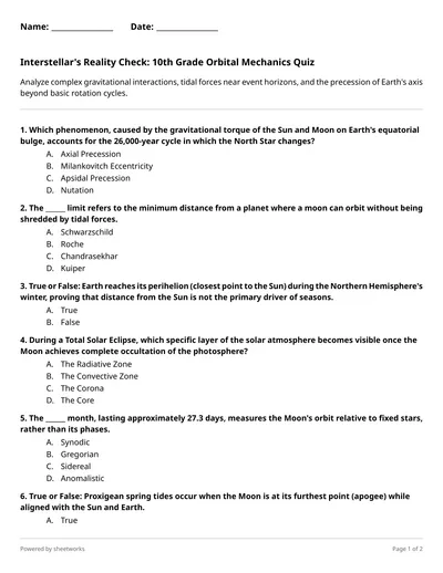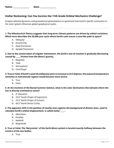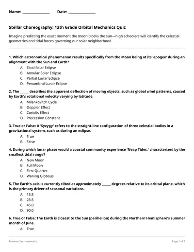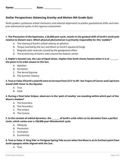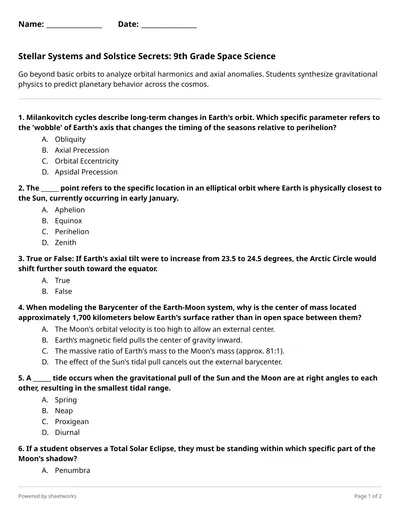 Ninth graders synthesize orbital mechanics and celestial alignments to predict gravitational shifts and interpret astronomical cycles in this rigorous assessment.