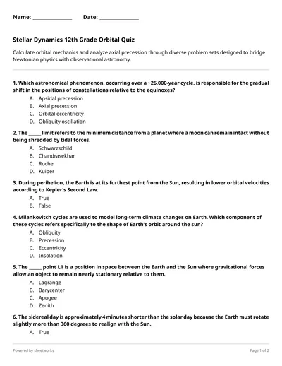 Calculate orbital mechanics and analyze axial precession through diverse problem sets designed to bridge Newtonian physics with observational astronomy.