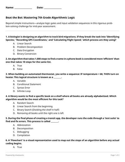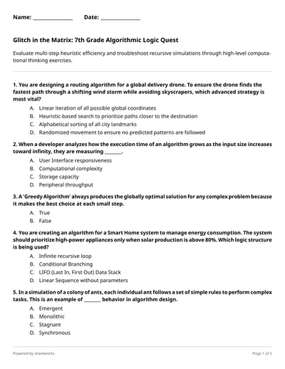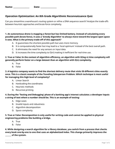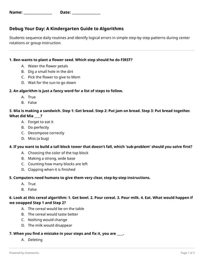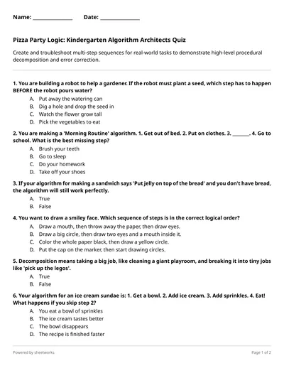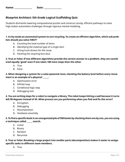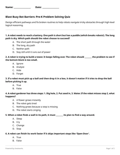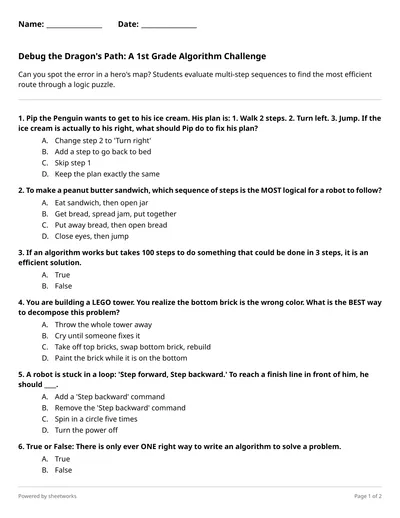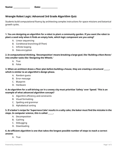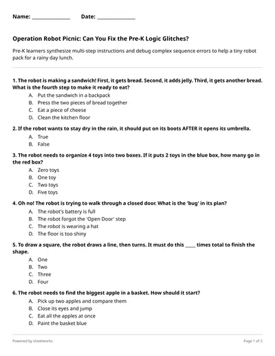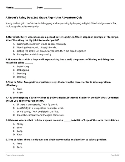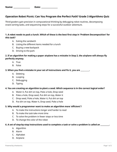 Operation Robot Picnic: Can You Program the Perfect Path? Grade 3 Algorithms Quiz